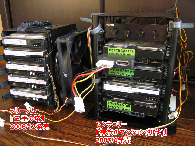 時代は、PATAからSATAに移行してホットスワップが簡単に出来る様になり、eSATA接続が流行り始めた頃です。HDDスタックケース製品が多数登場する様になり、2006年12月にフリーダムから『五重の塔』が発売されました。