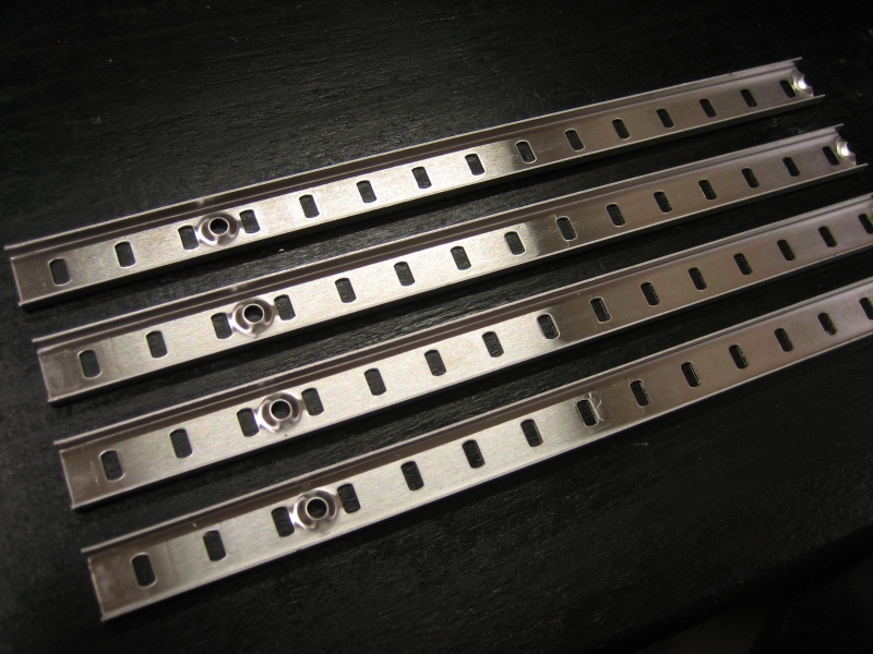 ・ステンレス 棚柱レール2本セット (縦455×横14.5×高5mm 厚1mm) (ホームセンター:約500円)