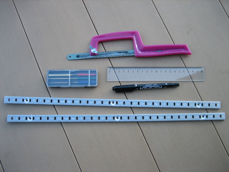 支柱にする棚柱レールは2本1セットです。1本が455mmと長いので、半分に切断して4本にしました。