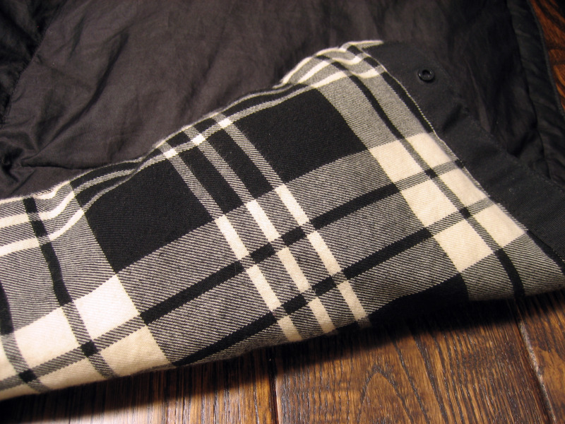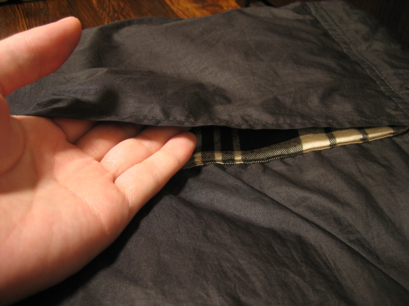 反対側のポリエステルの面は、ダウンジャケットに使われる様な生地質なので、布擦れの音とゴワ付きがあり、気になる人は気になると思います。