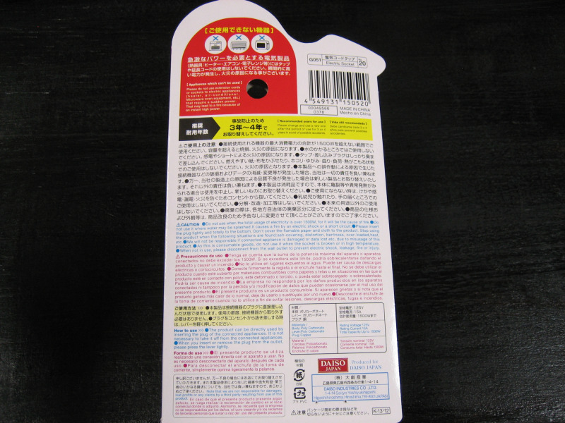 もしかして、海外ではこのパッケージのまま売られているのでしょうかね?もしそうならば、最近のダイソー商品の派手なパッケージと本体色も分かる気がするのですが・・・。