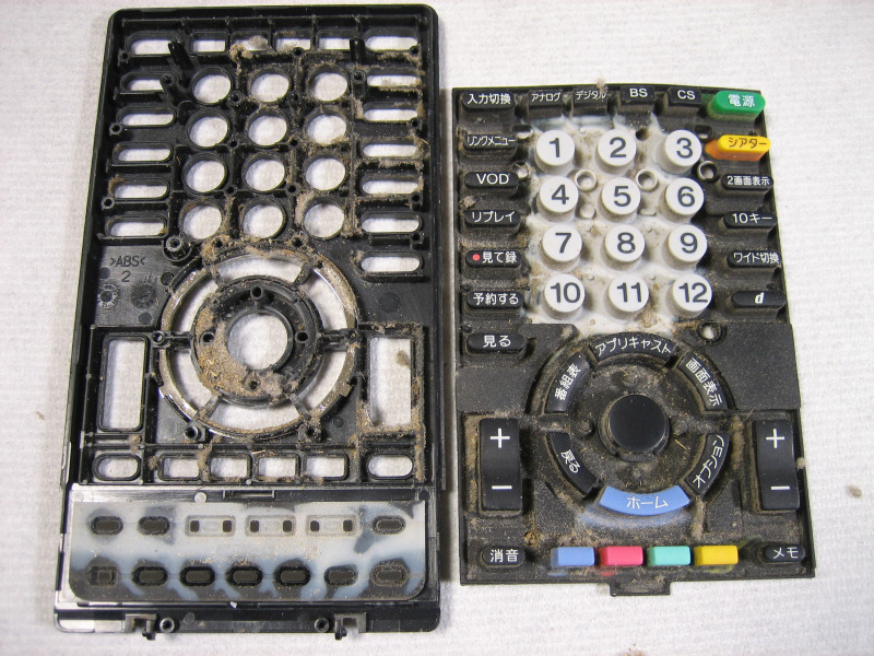 うちの母はかなり目が悪く、歳を取ってからズボラになって来た感があるので、仕方ない面もあるのですが、見逃せないボタン反応の悪さと汚さだったので、代わりに分解掃除する事にしました。