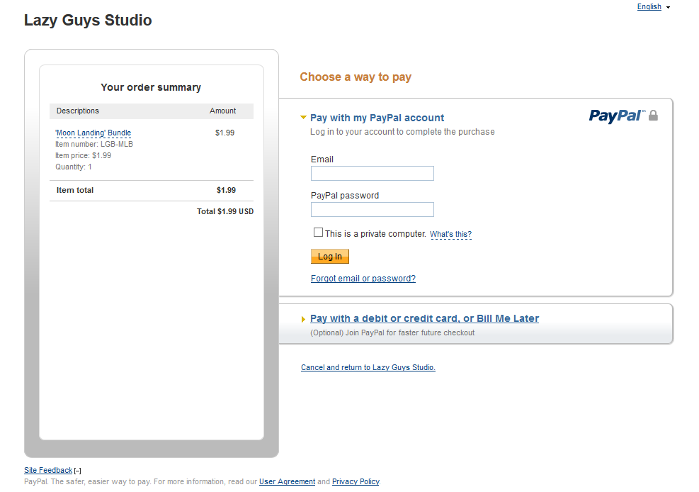 支払いはPayPalのみで、【Buy Now】ボタンを押すと、PayPalの支払いページが開きます。