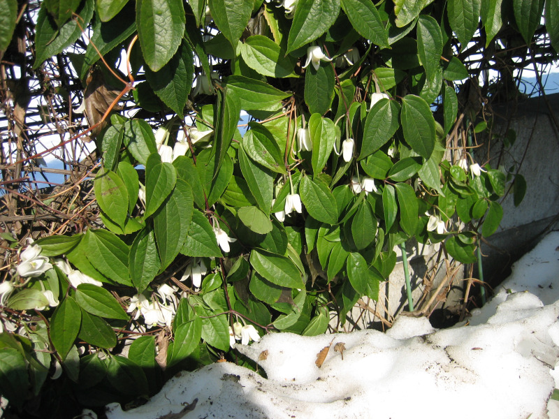 2回目は特に大雪でしたが、その影響はまるで無く、青々とした葉の中に白いベル形の花を咲かせていました。