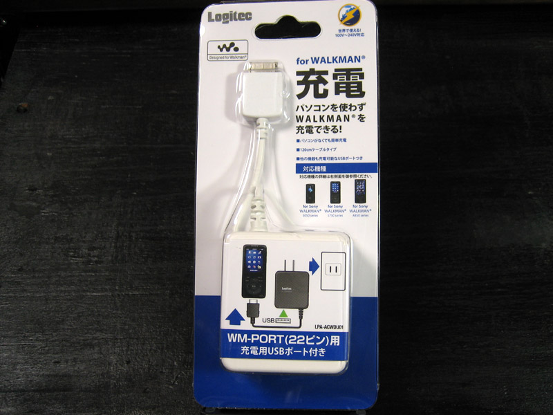 別途購入した充電器は、Logitecの『LPA-ACWDU01』です。対応表記されたウォークマンが型落ちしていますが、充電は問題無く出来ました。