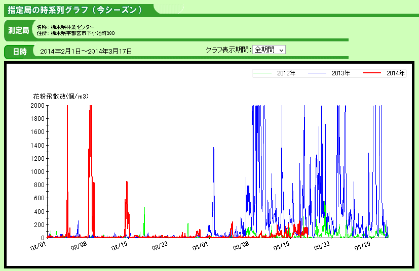 こちらは『はなこさん』の指定局の時系列グラフで、うちの県の真ん中辺りにある栃木県林業センターのデータです。