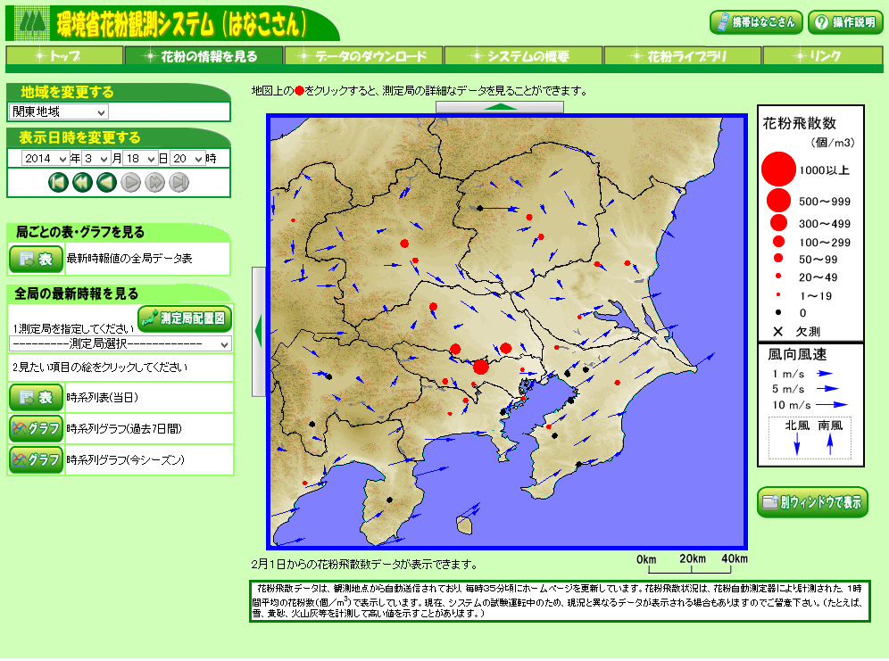 → 花粉の情報を見る -環境省花粉観測システム-