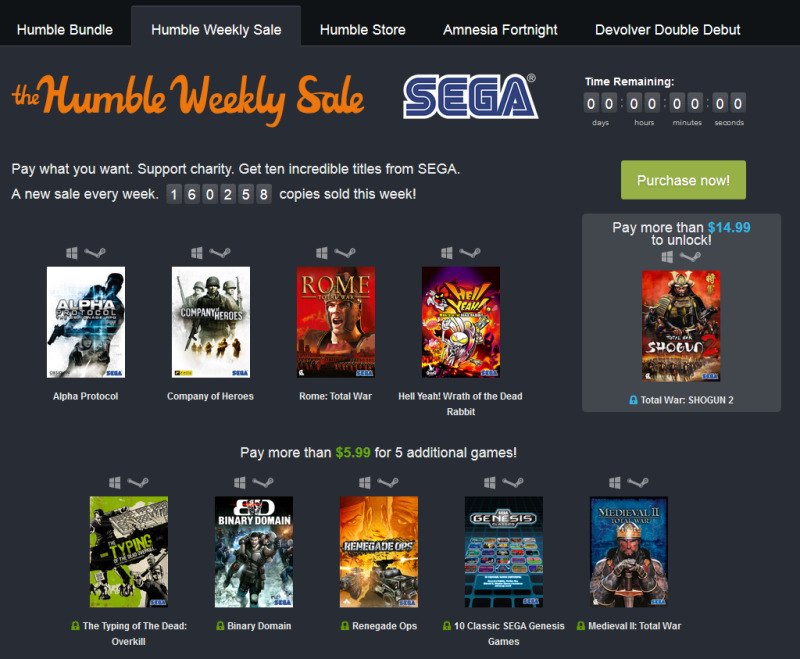→ Humble Weekly Sale : SEGA (pay what you want and help charity)