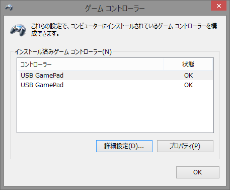 PCに接続すると、2つのUSB Game Padが表示されます。