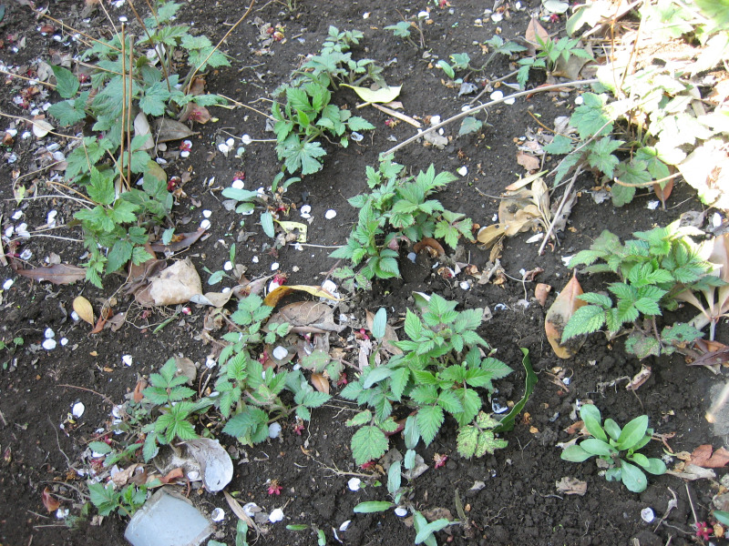 鉢植えにしたラズベリー『品種名:マイラビット』、『品種名:プチルビー』を土の上に置いておいた所、植木鉢の下の穴から地下茎を伸ばして、周りで繁殖してしまいました。