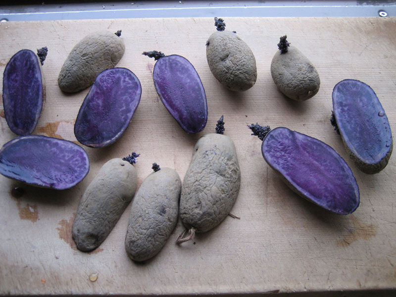 まず、大きい種芋を半分に切りました。芽が出ている部分を上手く二等分してやるのがポイントです。だいぶしなびて来てしまっています。植え付け時期としてはギリギリです。収穫量は減るかもしれません。