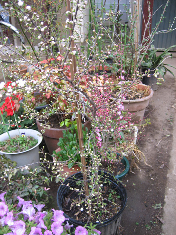 梅の木苔?が幹に生えるほどの結構な古株で、家に植えてから15年くらいたちます。
