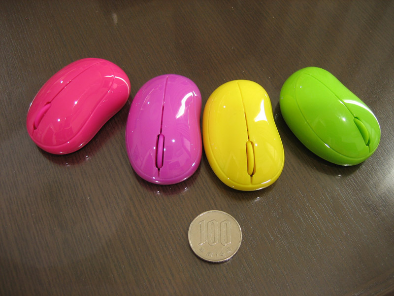 このマウスの特徴と魅力はギネス記録に認定される程の小ささです。この小ささに惹かれて、色違いながら同じマウスを4つも買ってしまいました。 (他に、白色と黒色もあるのですが、その2色は売り切れていて買えず・・・)